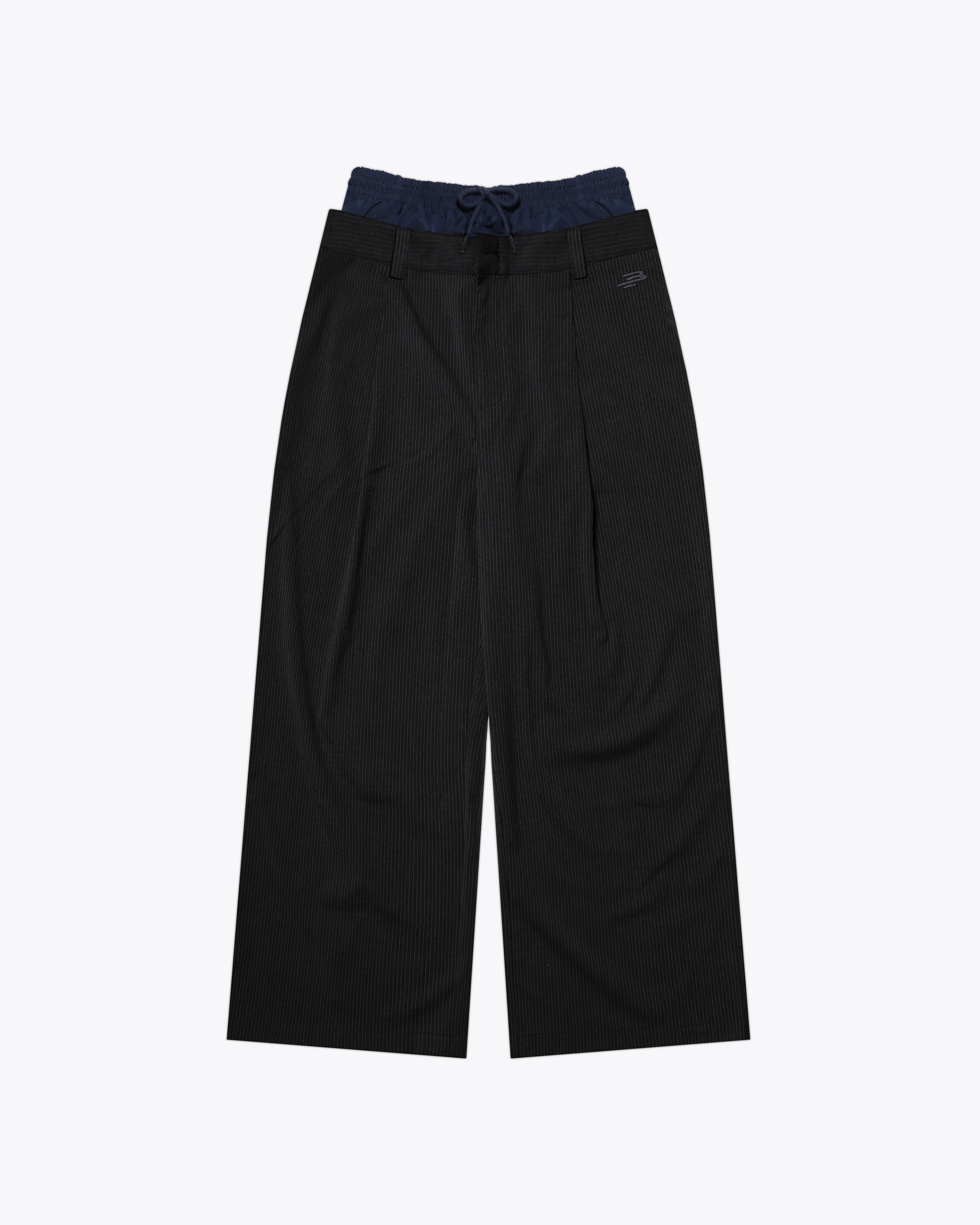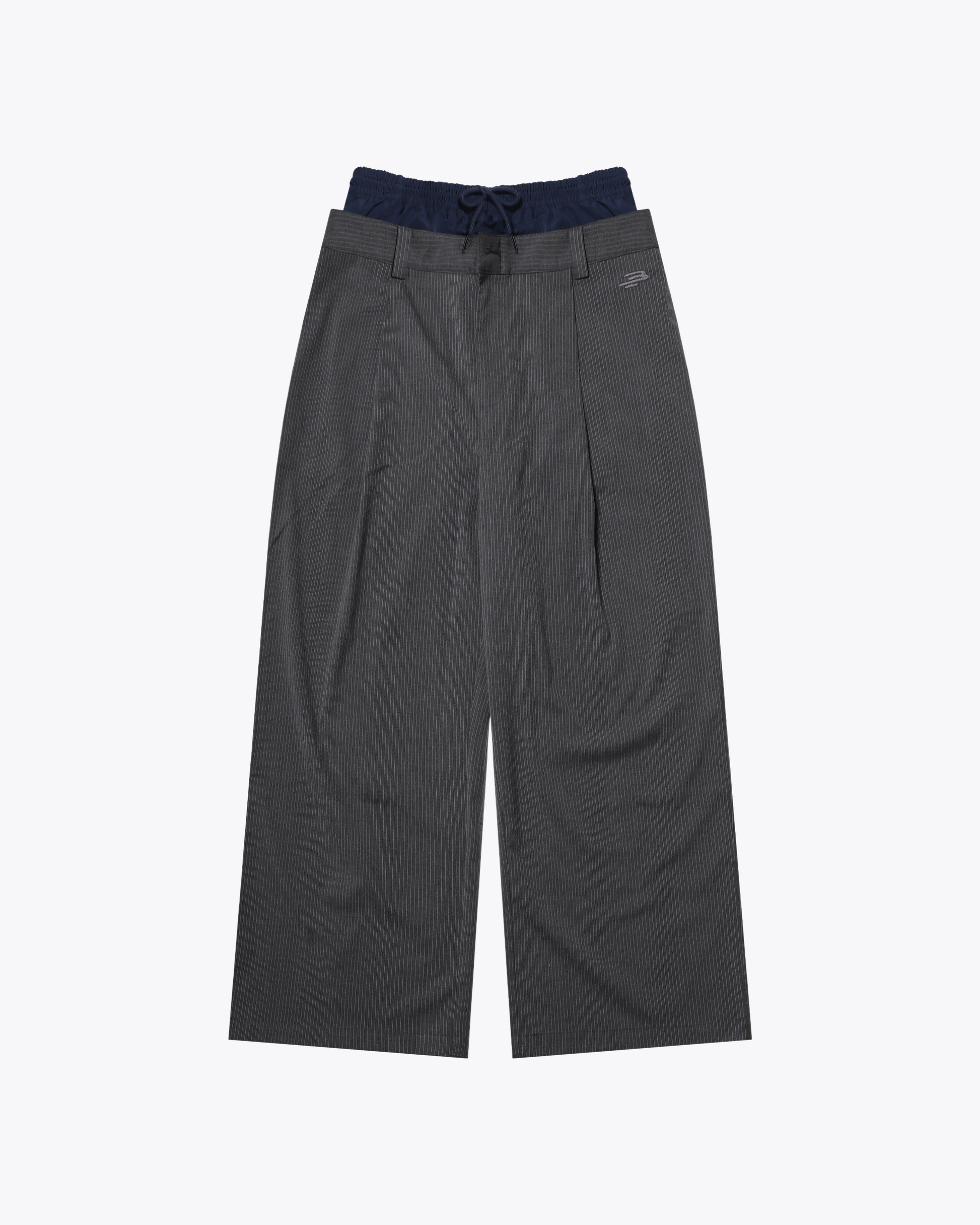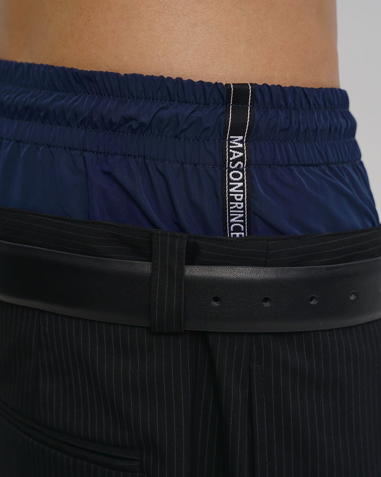 • Double-layer hybrid design combining nylon sport shorts and pinstripe suiting fabric