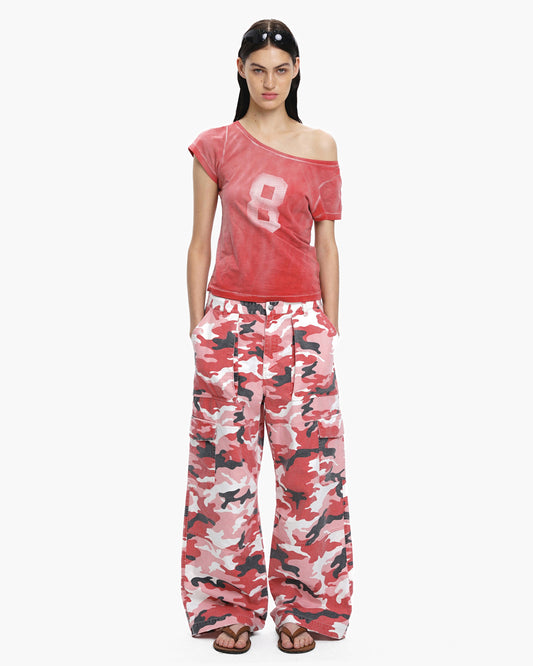 100% cotton Relaxed workwear fit Hand-distressed finishing Custom red camouflage pattern Garment washed for a...