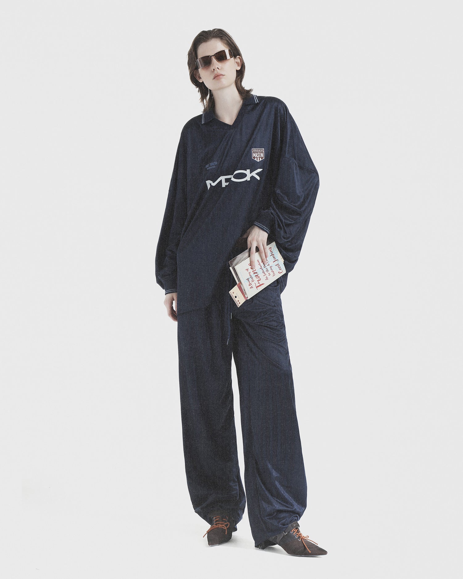 We recommend choosing one size smaller for a regular fit, as the model is styled in a larger size to achieve an artistic effect.