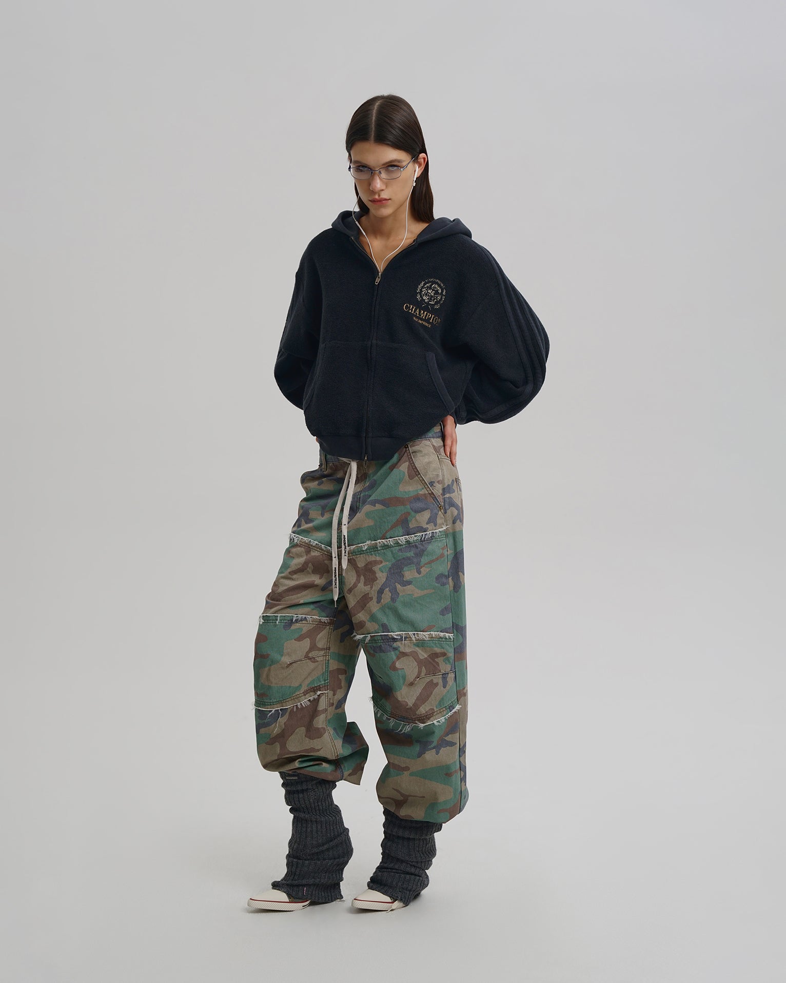 Styling Tip: Layer over camo cargos or wide-leg denim to emphasize its retro athletic aesthetic.
