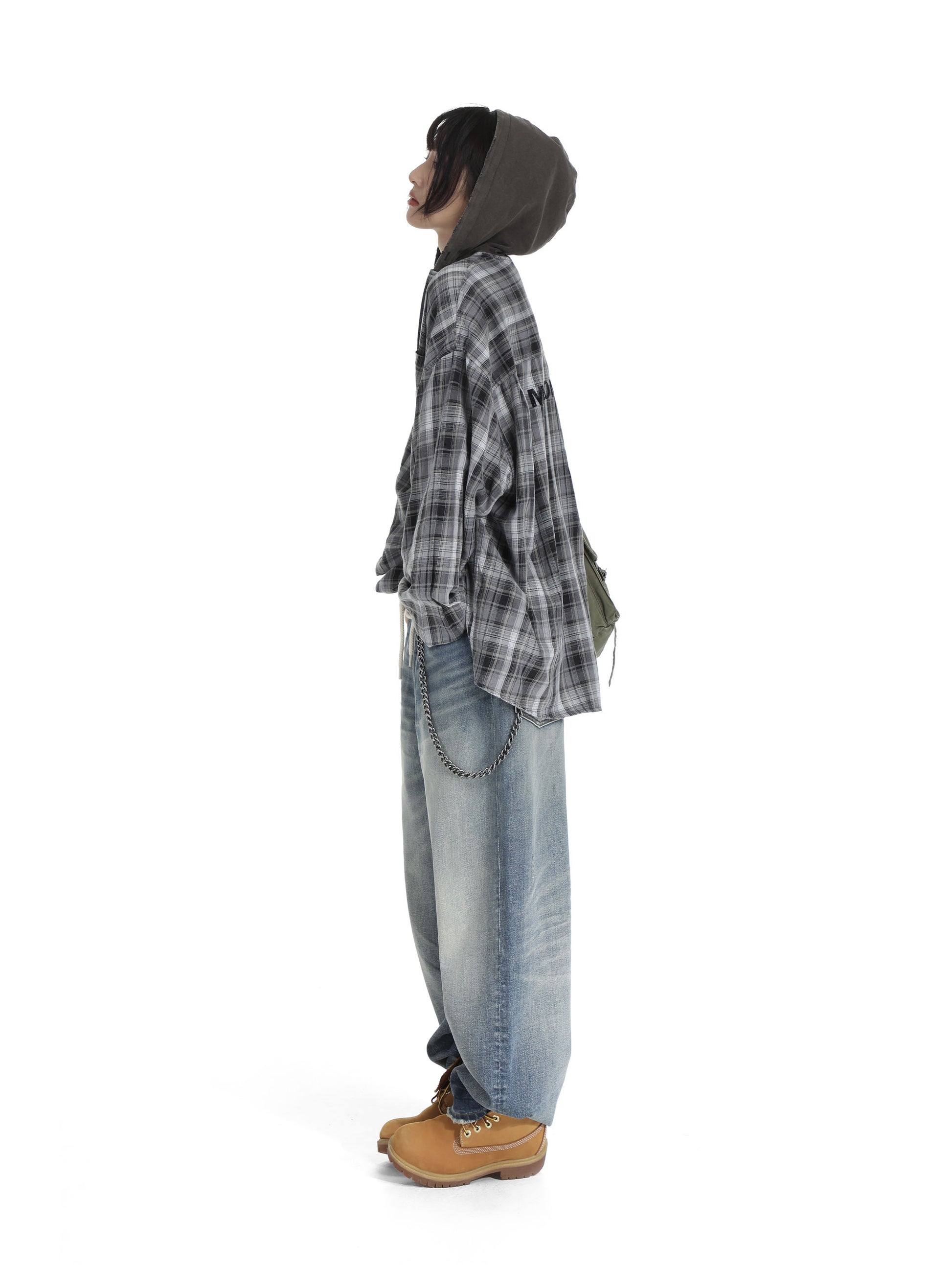 Faded hooded plaid Shirt - Black and White