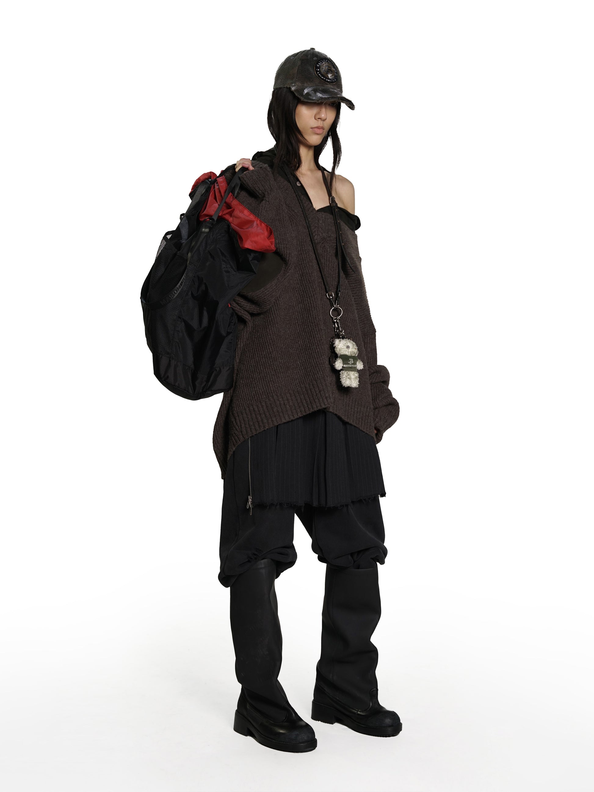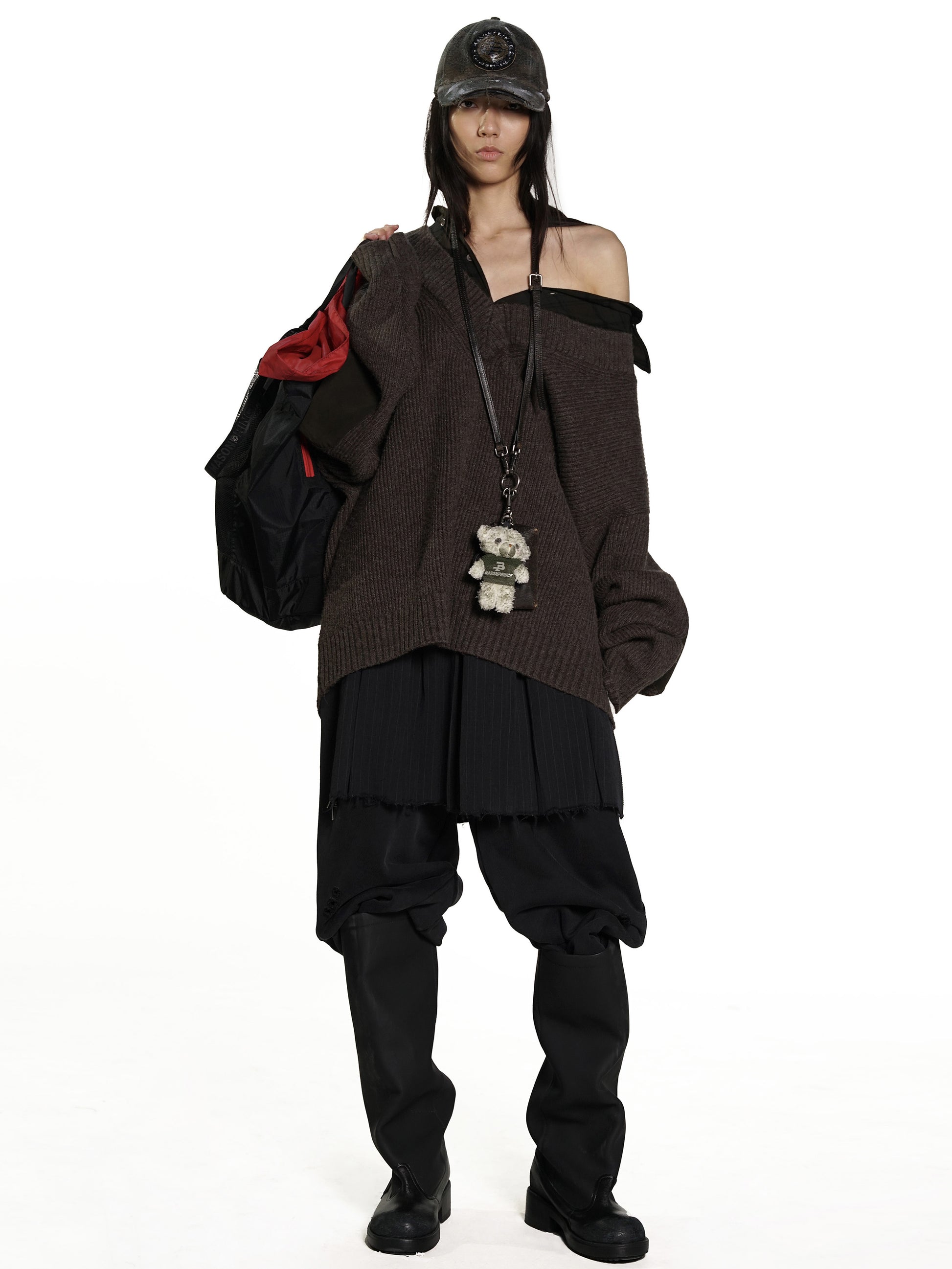 We recommend choosing one size smaller for a regular fit, as the model is styled in a larger size to achieve an artistic effect.