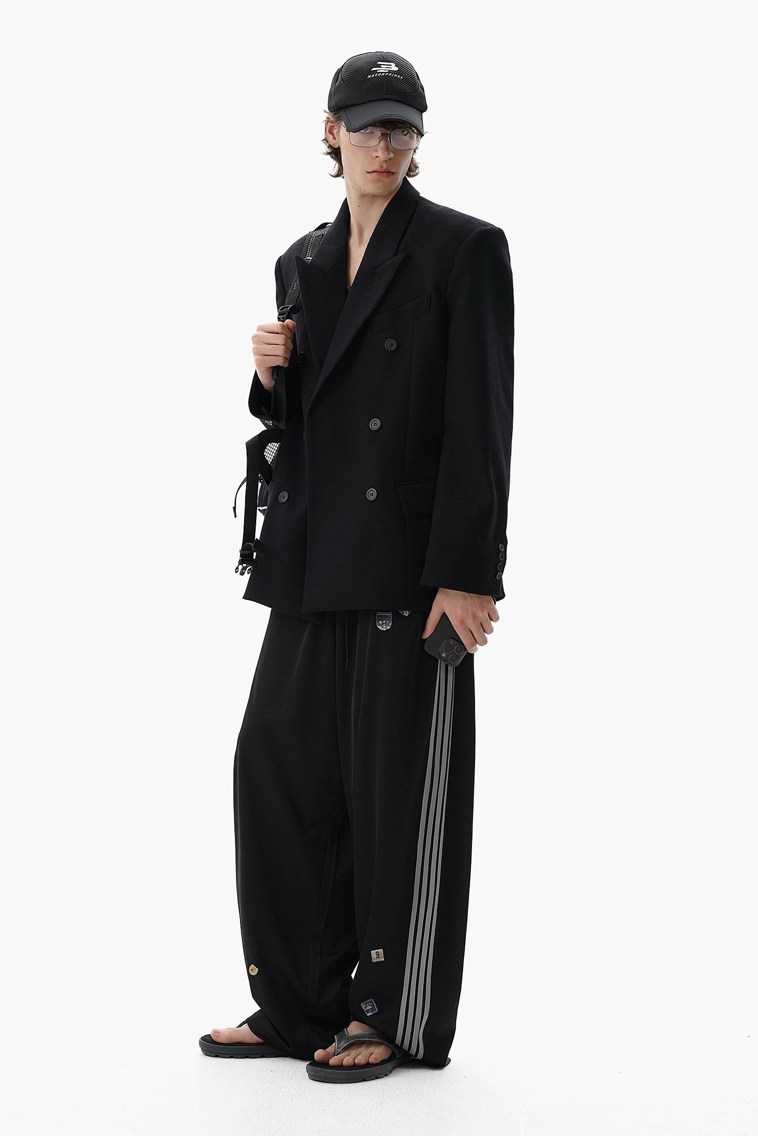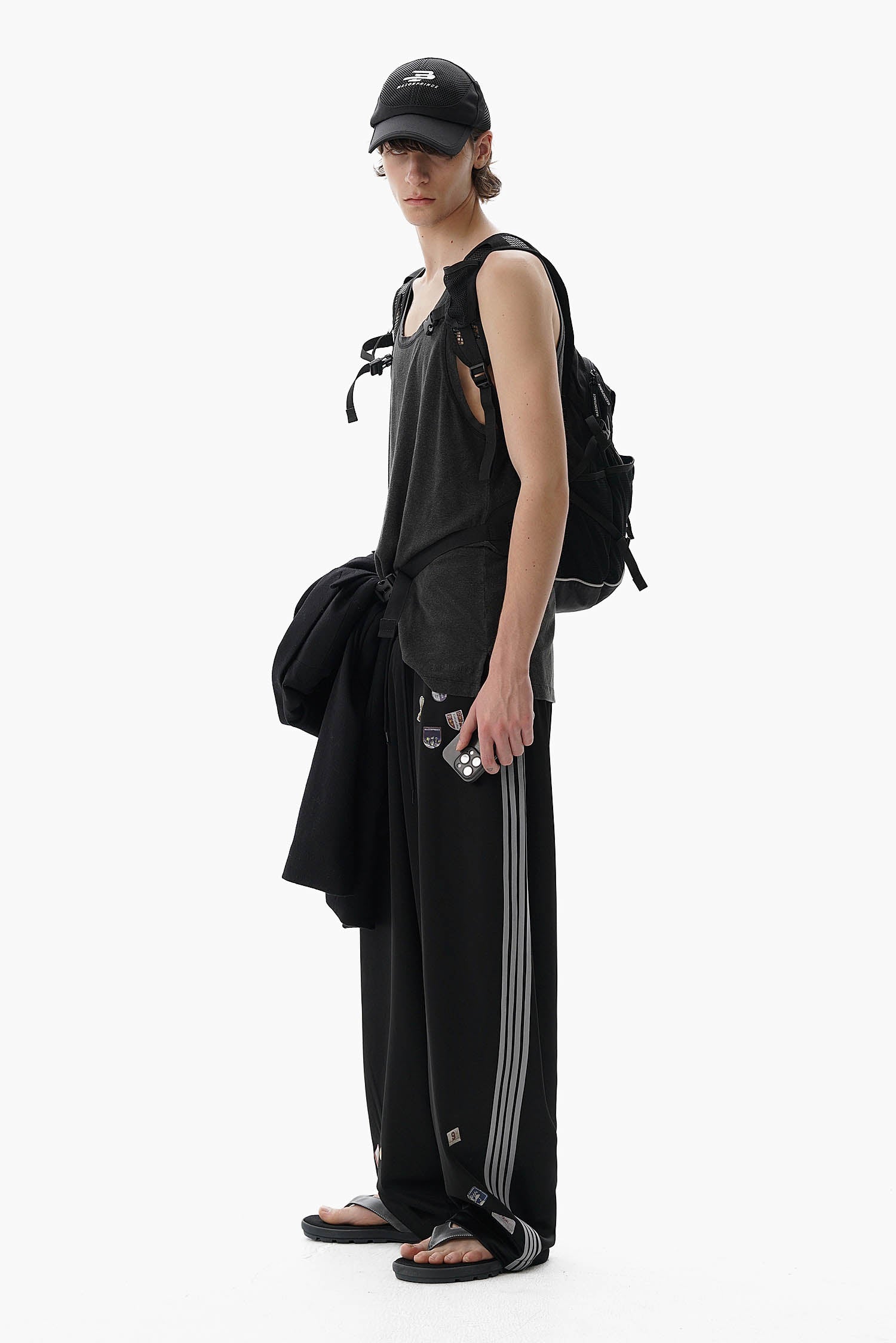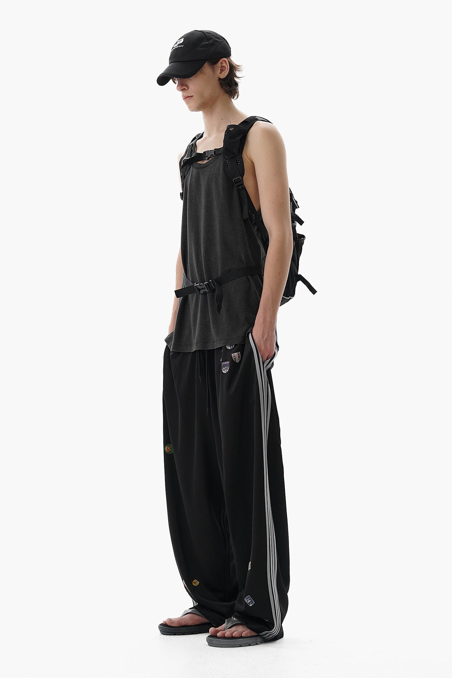 The Team Club Sticker Pants reinterpret classic athletic trousers with a playful and collectible twist. Made from smooth, lightweight polyester with a subtle sheen, they feature a series of mini printed stickers and contrasting triple stripes down the side, bringing a nostalgic sports vibe to the streetwear silhouette.