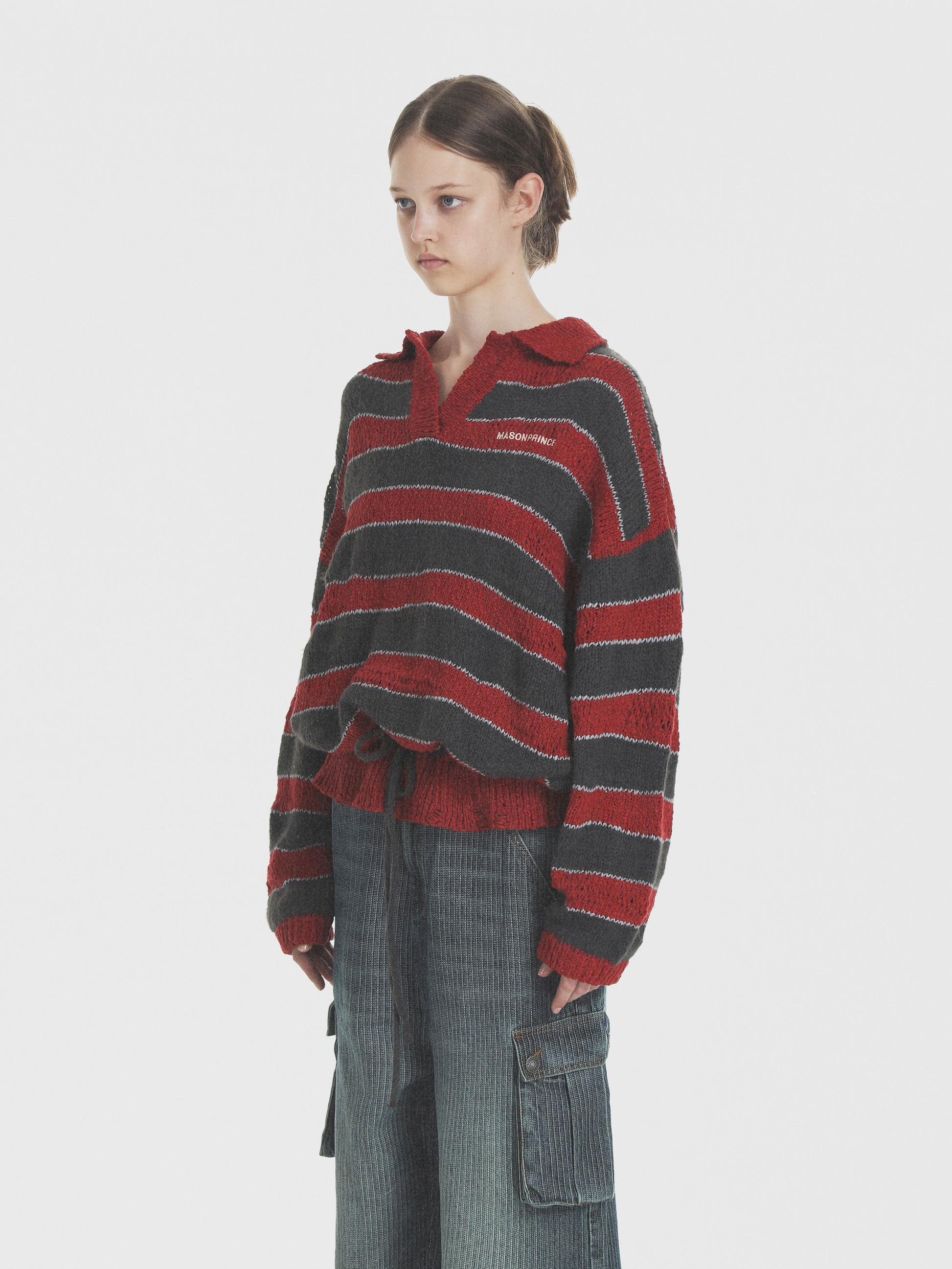 - Loose-fit POLO style with alternating thick and thin textured double yarns