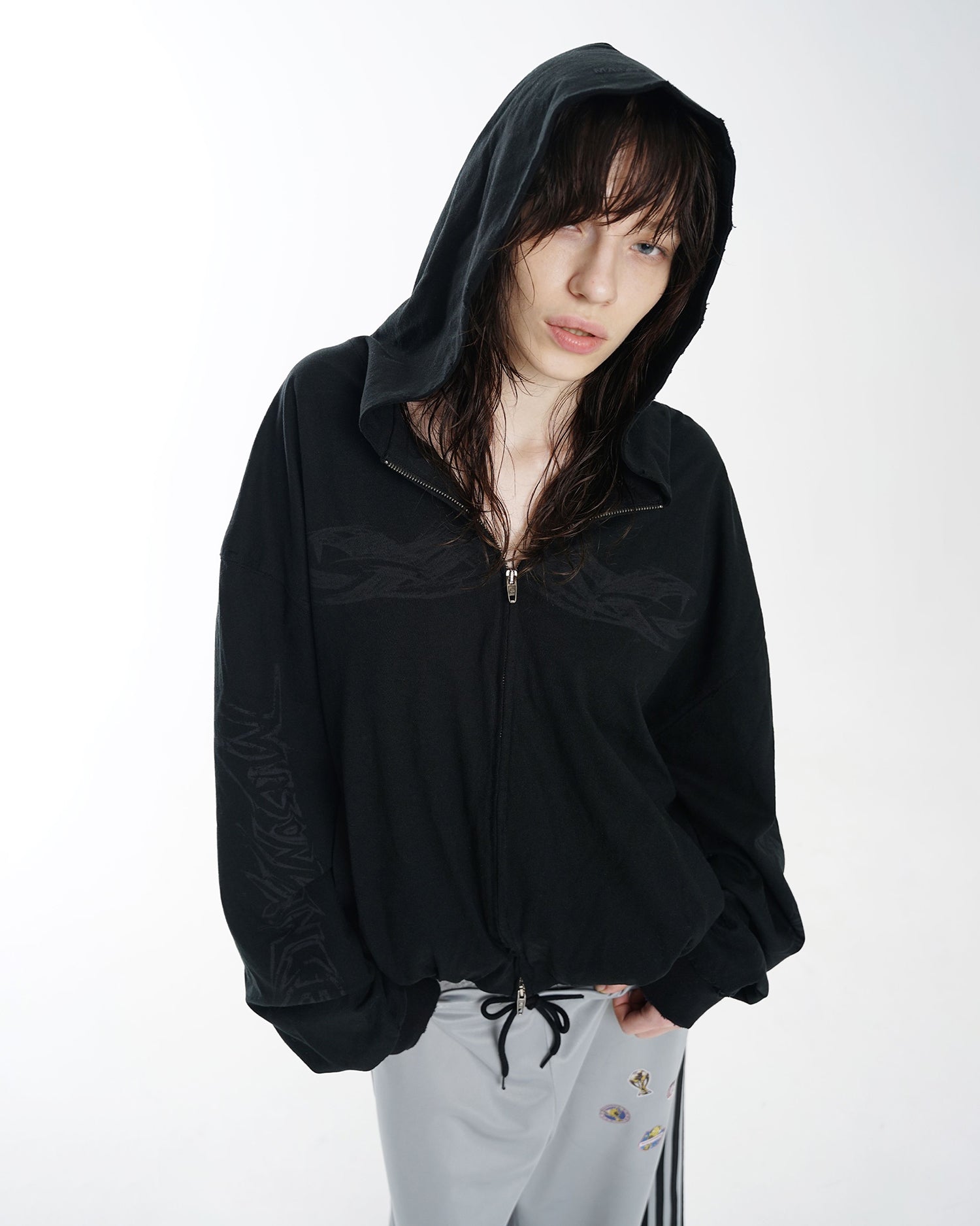 Styling Tip: Let the hoodie speak by pairing it with wide-leg pants or shorts. Layer with silver or black accessories for a shadowcore finish.