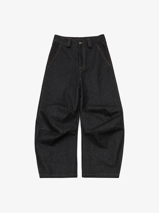 Unisex Fit Oversized loose machete shape Embossed knees Quilted and pleated back pockets Customised metal...