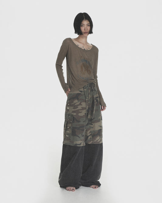 Unisex Mid-Rise Straight Fit Custom Sand Camo Fabric with Black Knitted Cotton Panels Convertible 2-in-1...