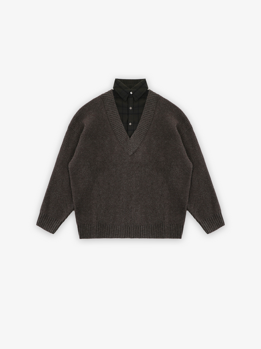 Unisex Fit V-neck loose fit Woven fabric shirt collar False two-piece design Faux Suede elbow...