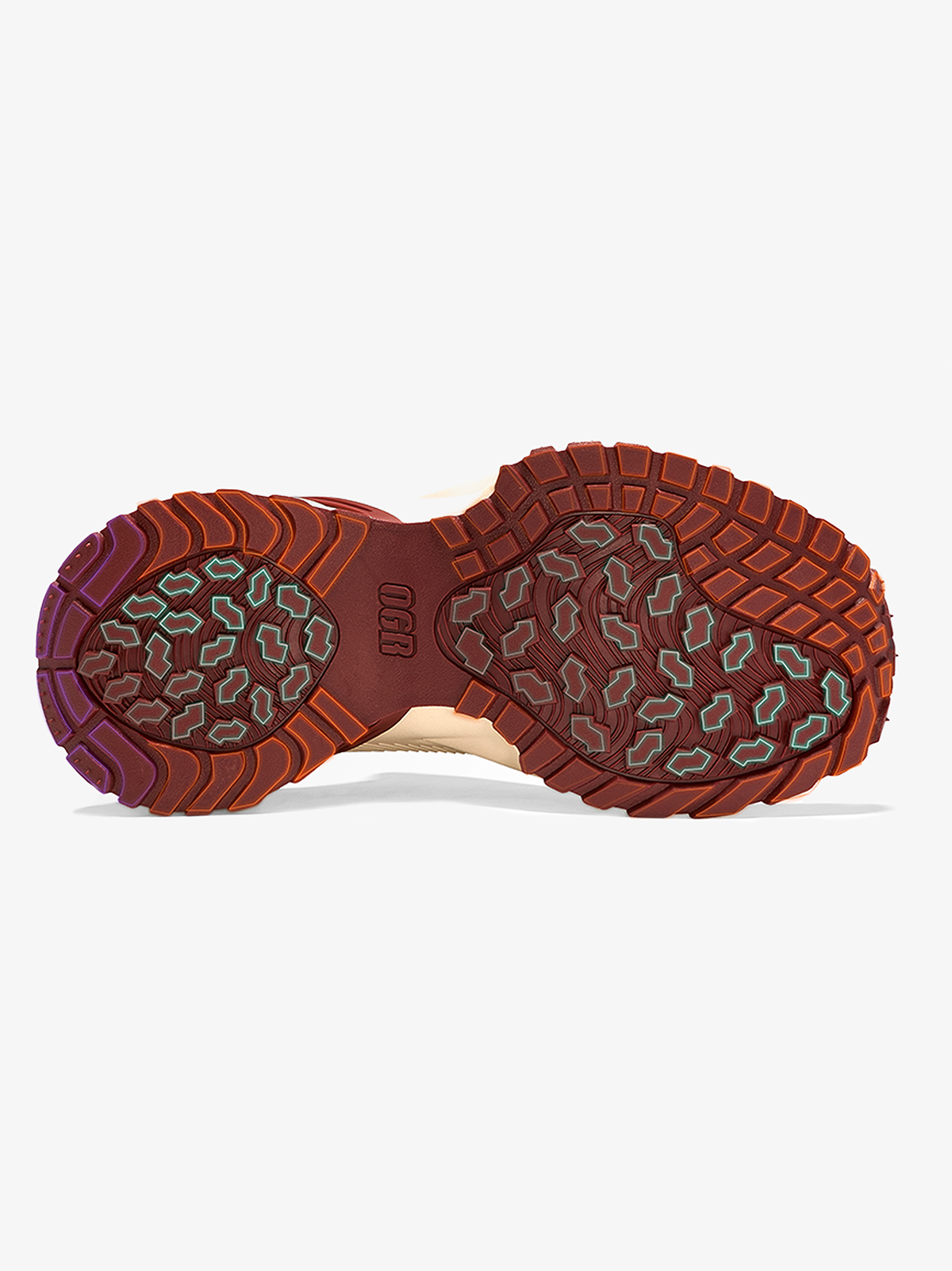 Metallic overlays contour breathable mesh above a sculpted platform built for city movement. Part of the Rattlesnake lineage, it balances lightness, comfort and wet-ground grip.